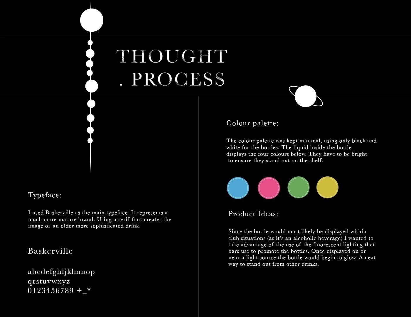 using space as my main theme since it’s the most mysterious place we know. My idea is to draw from planets in our solar system and reflect them in each bottle.